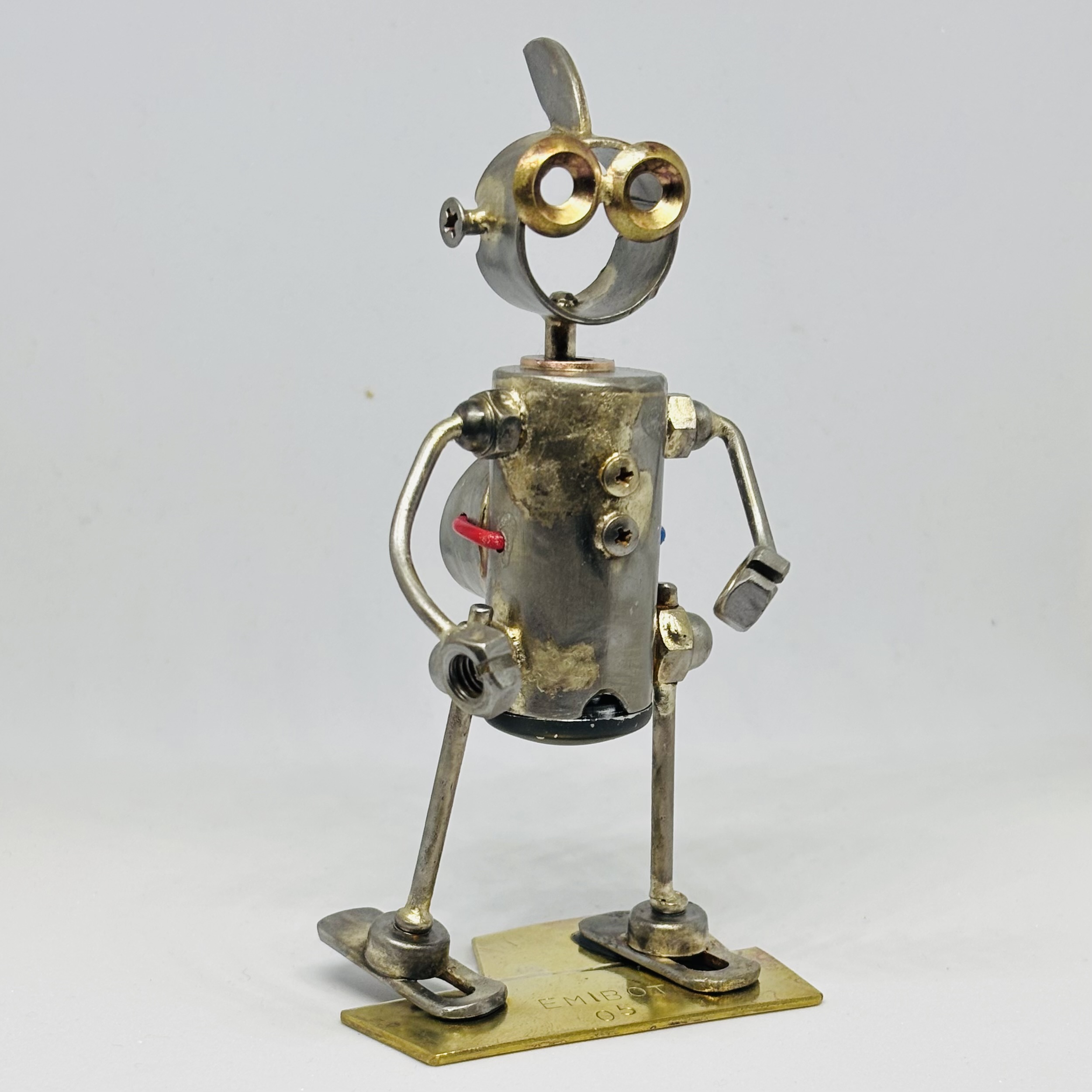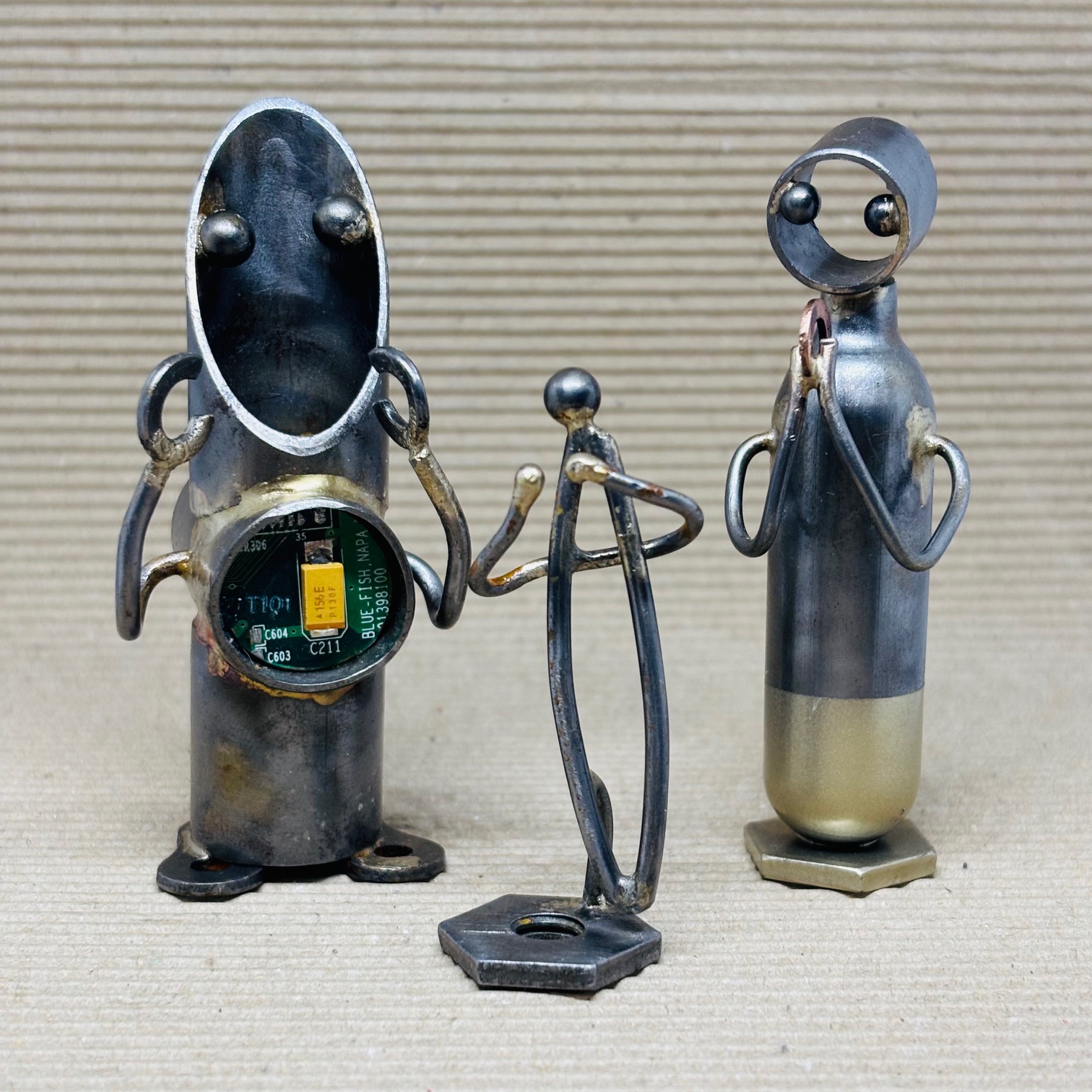 廃棄される自転車や車いす、機械やPC部品などから、ロウ付けで制作した、人物、動物、ロボットなどです。すべて手作りで一点ものとなります。今まで見たことのない独特のアートを楽しんでください。