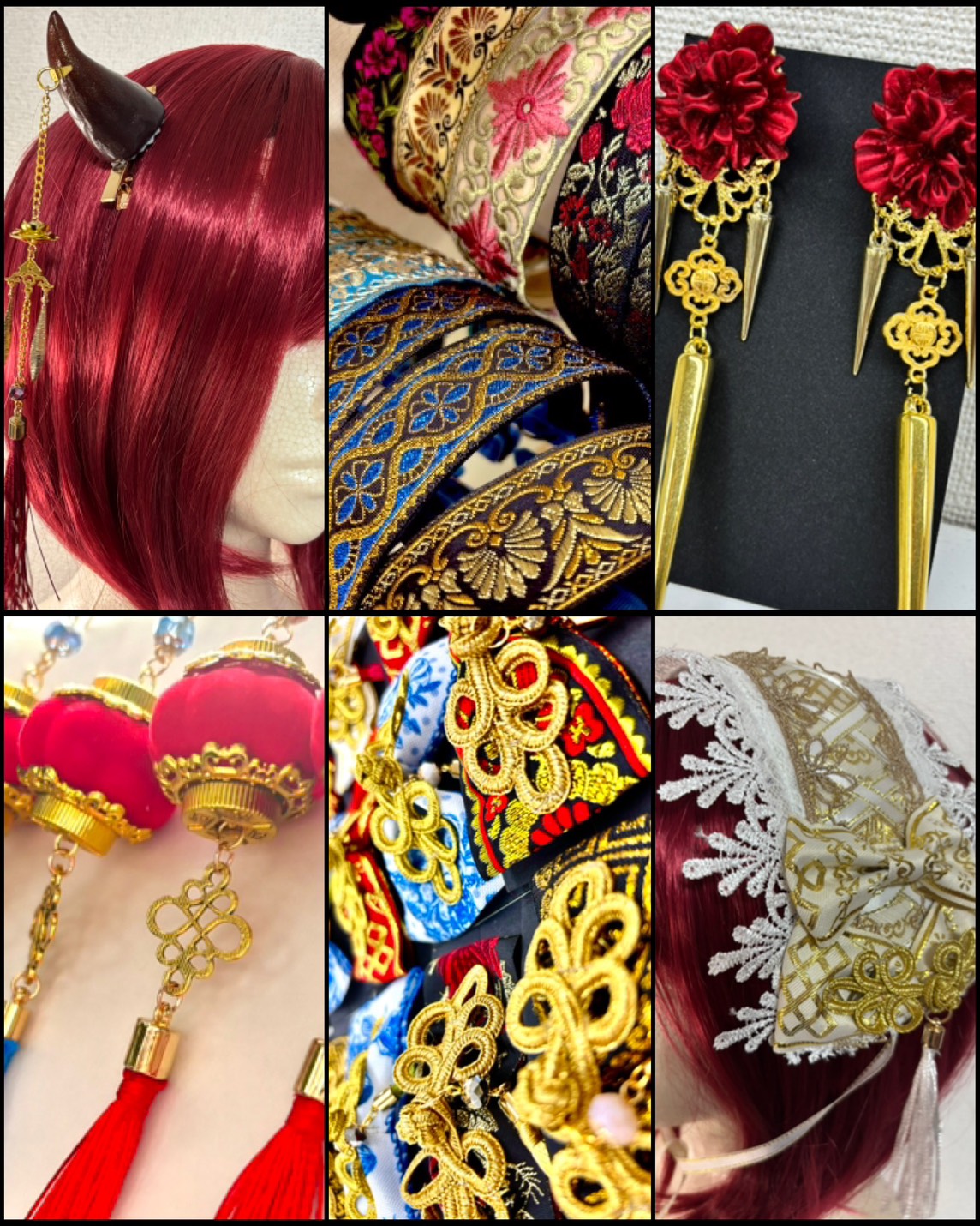 中華モチーフと蝶モチーフのアクセサリー、雑貨、布物、衣類、ガチャ