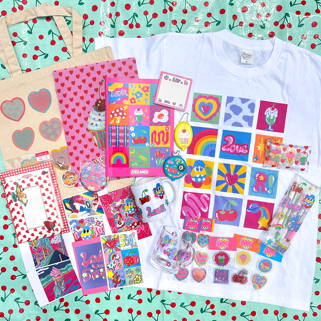 キャンバスアート原画、ステッカー、文房具、キーホルダー、アパレル等
