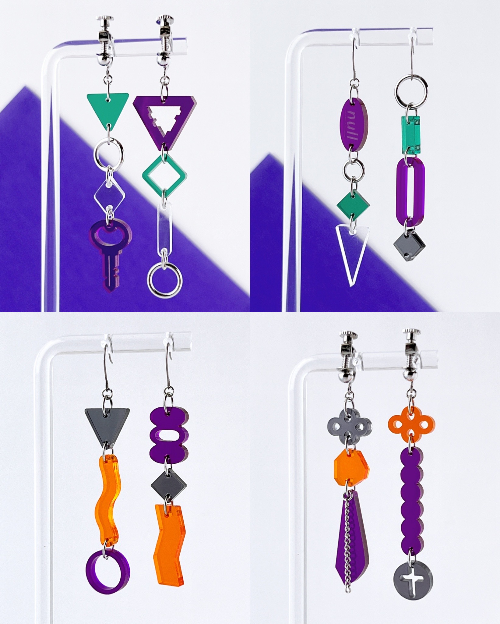 オリジナルデザインのアクリルパーツを使用したアクセサリー販売