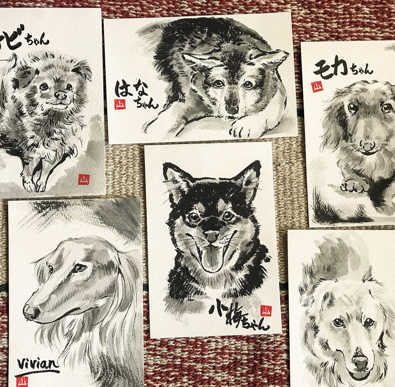 墨絵原画・グッツ販売、ペット似顔絵制作受注