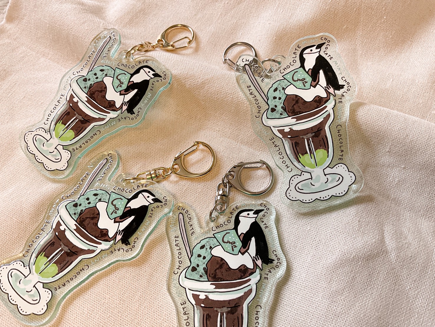 イラスト雑貨(シルクスクリーン印刷を施した布小物、リソグラフ紙小物、ハンコ、ステッカー、キーホルダーなど)