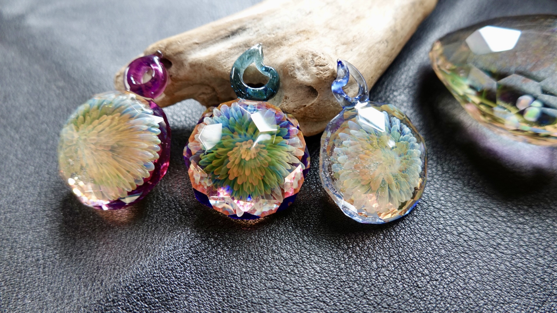 マクラメ編みとガラスの装身具 ガラスペン ペーパーウェイト