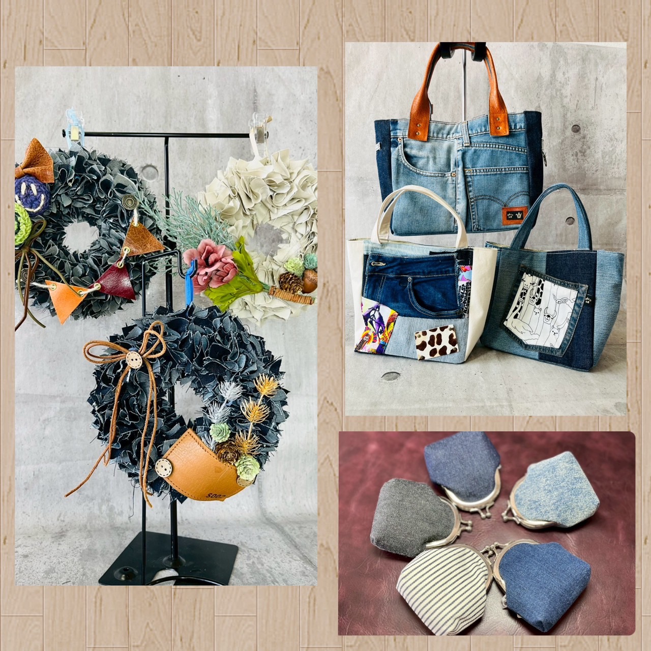 障がい者の方々が製作したハンドメイド雑貨(着物・デニムリメイク雑貨、ハンドメイド雑貨)