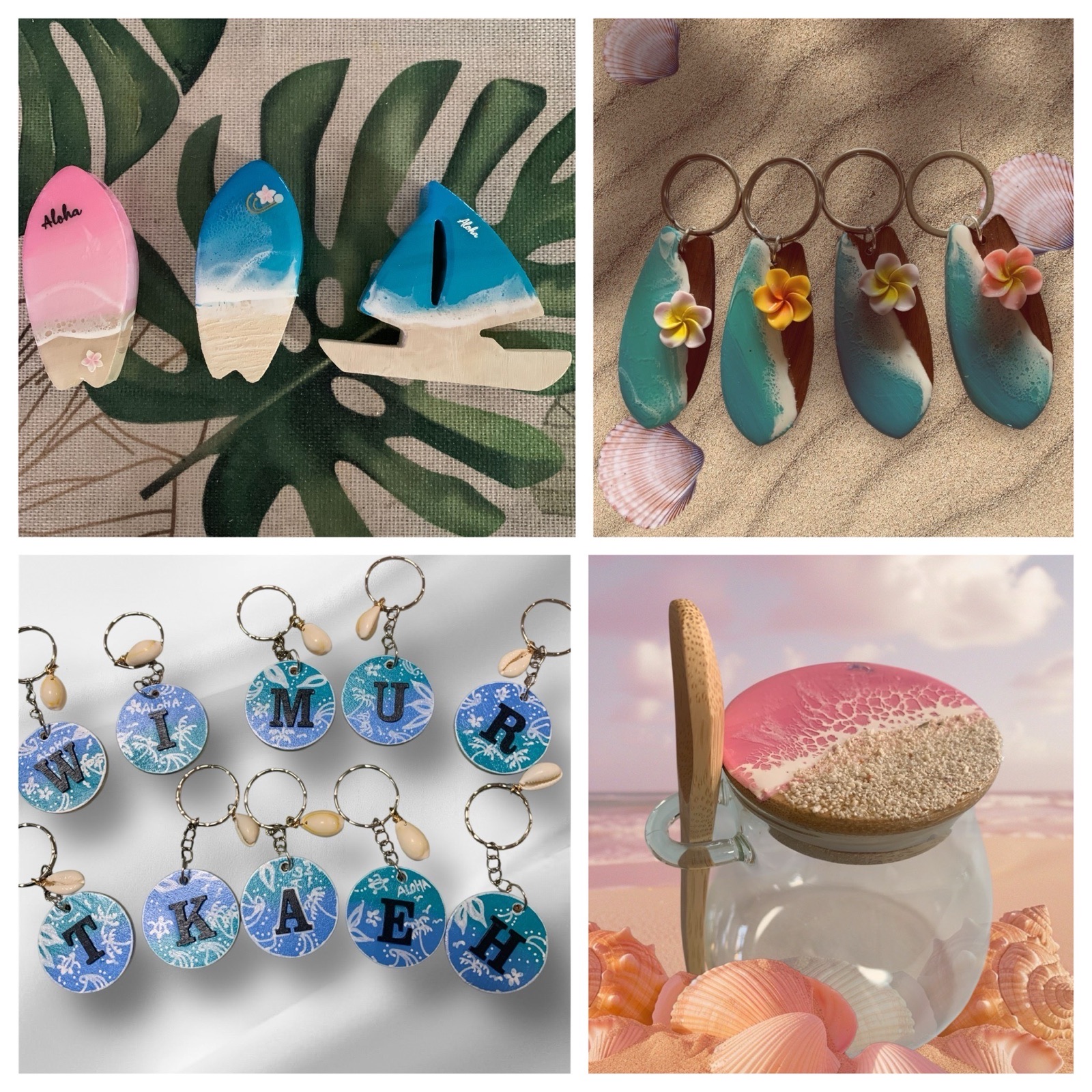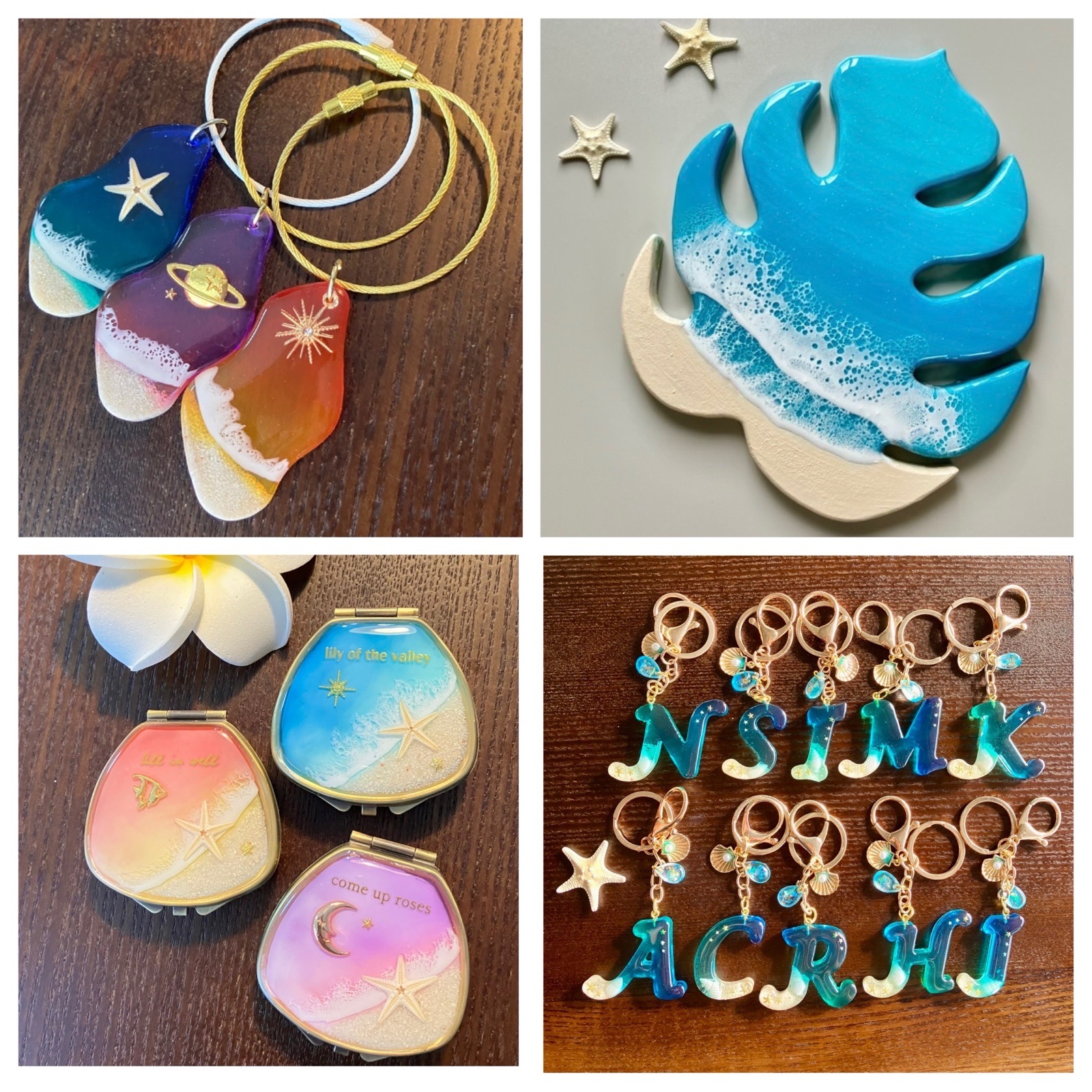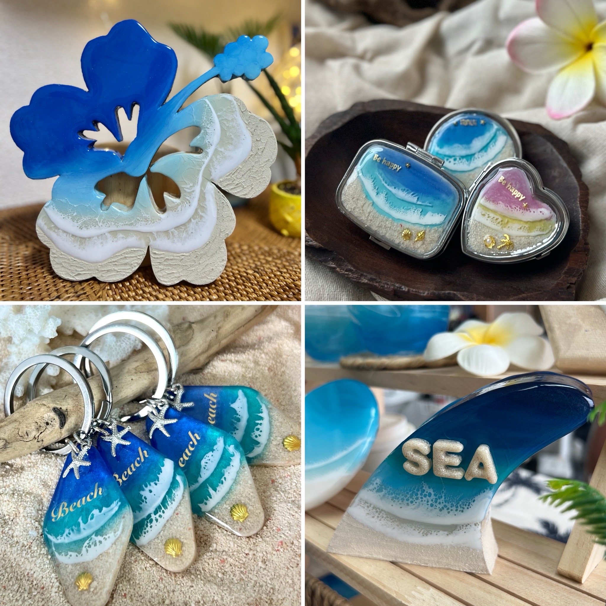 沖縄やハワイの海をテーマにしたレジンアート作品を出展します。波表現にこだわったアートパネルを中心に、雑貨・アクセサリー・コースター・タンブラーなどの一点ものを制作しています。すべて手作業で丁寧に仕上げた、透明感のある海アートです。