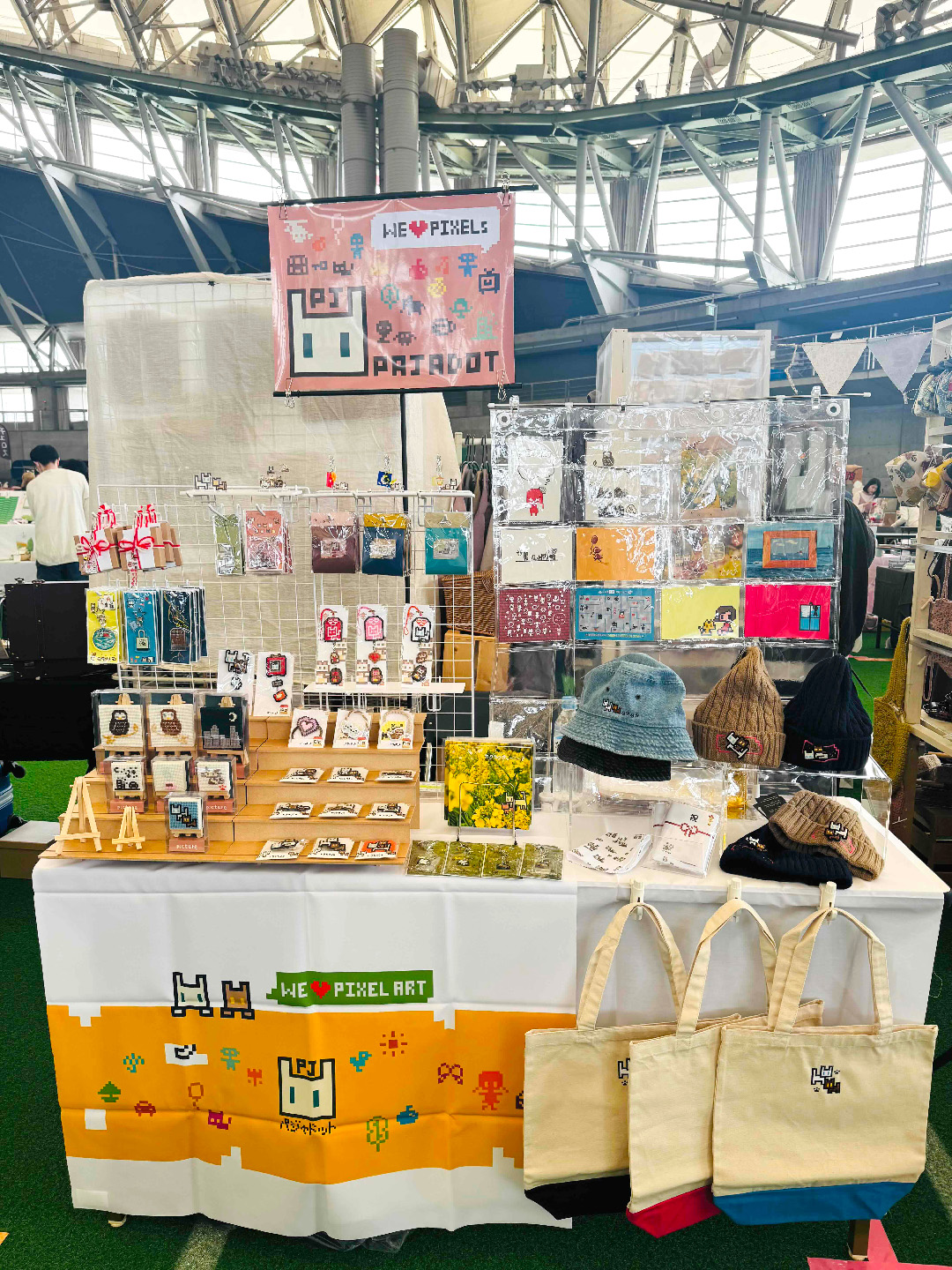 ドット絵をデザインした雑貨を販売。(ポストカード、アクリル雑貨、刺繍雑貨、冊子、アパレルなど)
