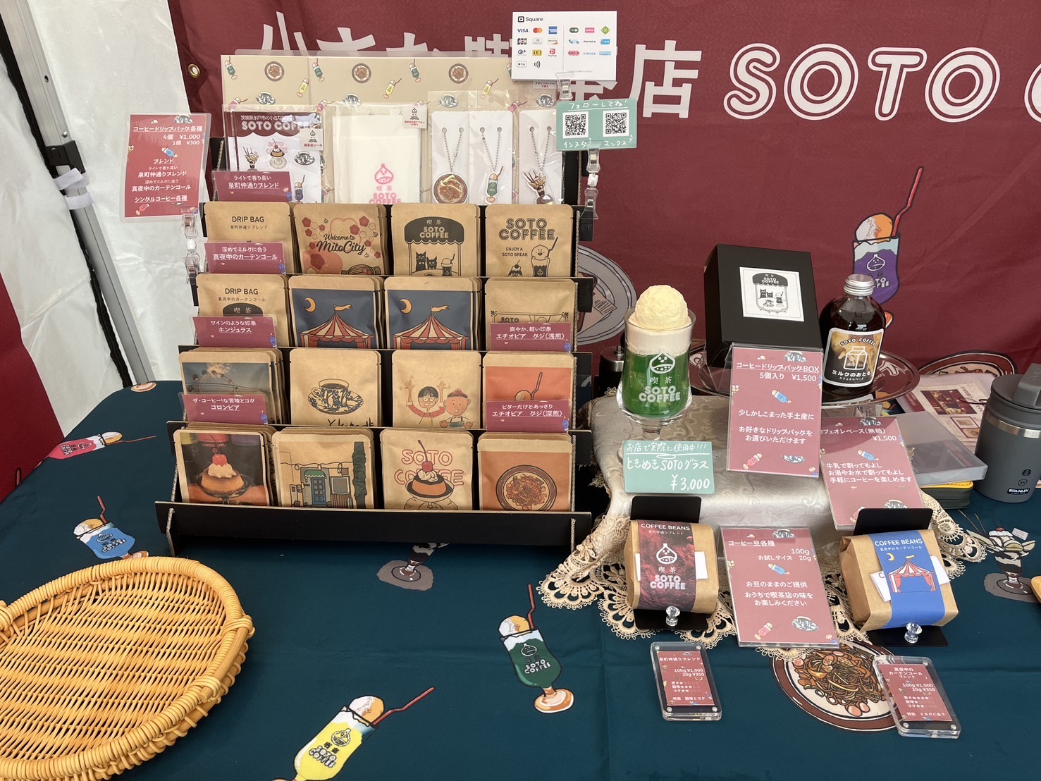 コーヒー豆、コーヒードリップバッグ、オリジナルグッズ販売