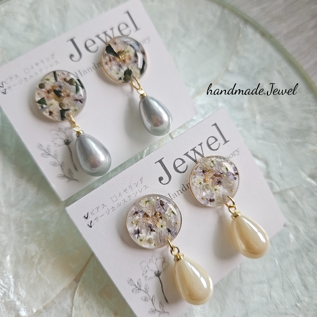 押し花のレジンアクセサリー販売と選んで繋げるキーホルダーのワークショップ