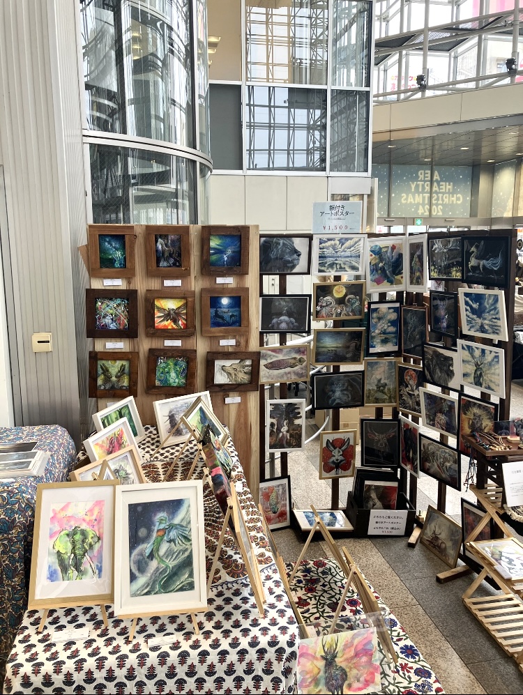 自身の絵画作品(原画)とそれらを元に制作したアートポスター、アクリルスタンド、ポストカードなどのグッズ。