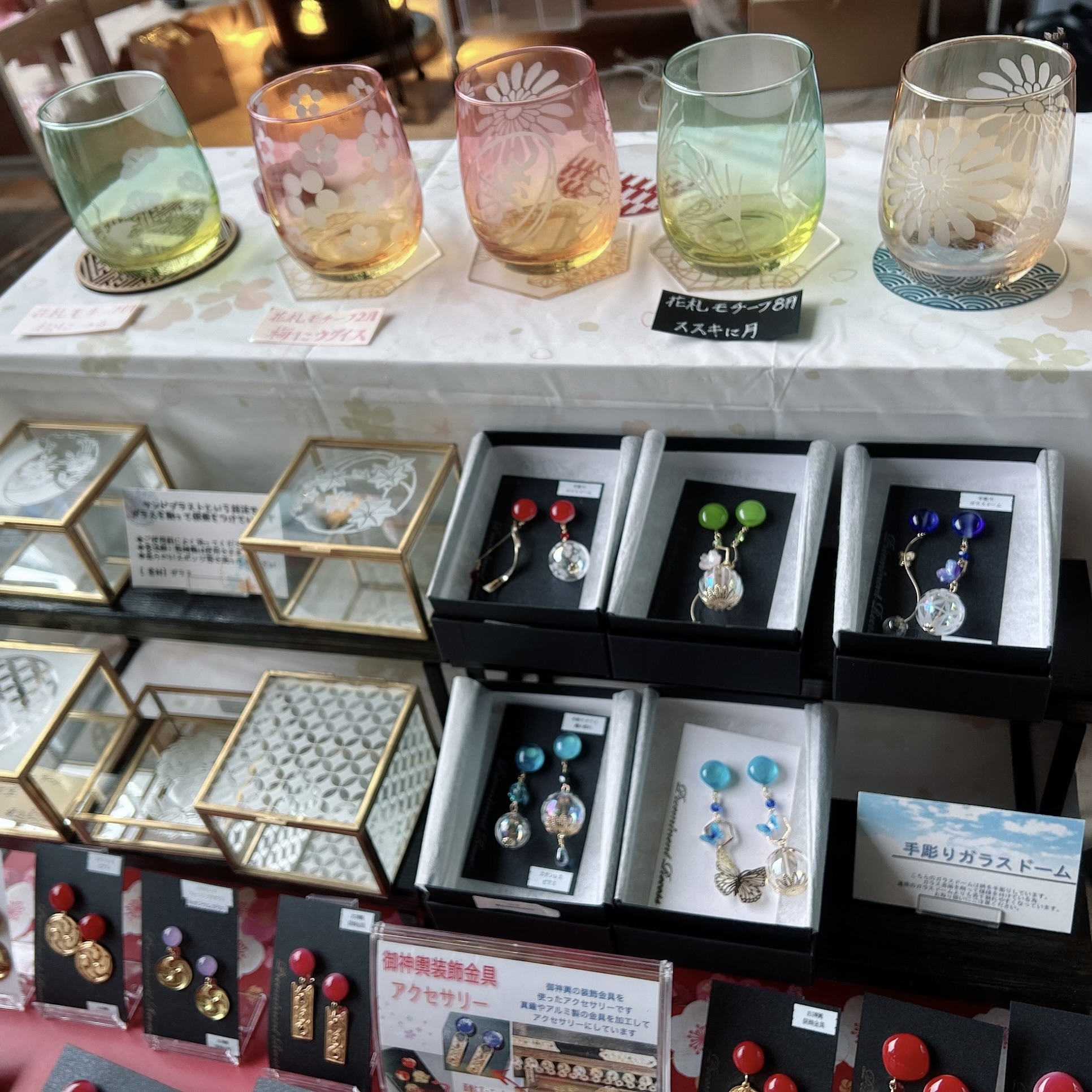 お神輿装飾金具を使ったアクセサリー、ガラス加工品