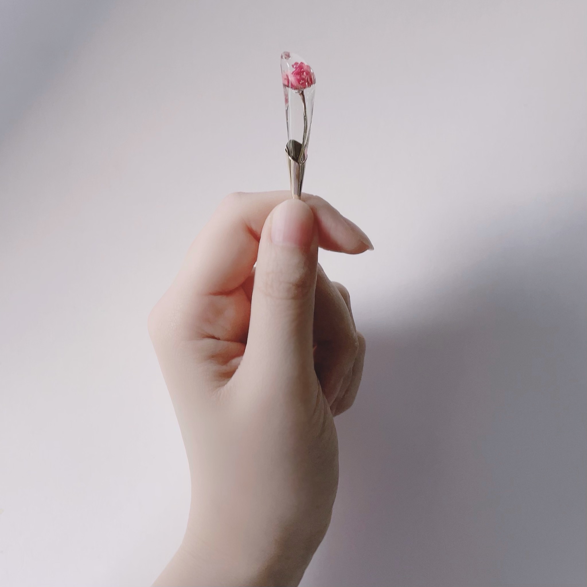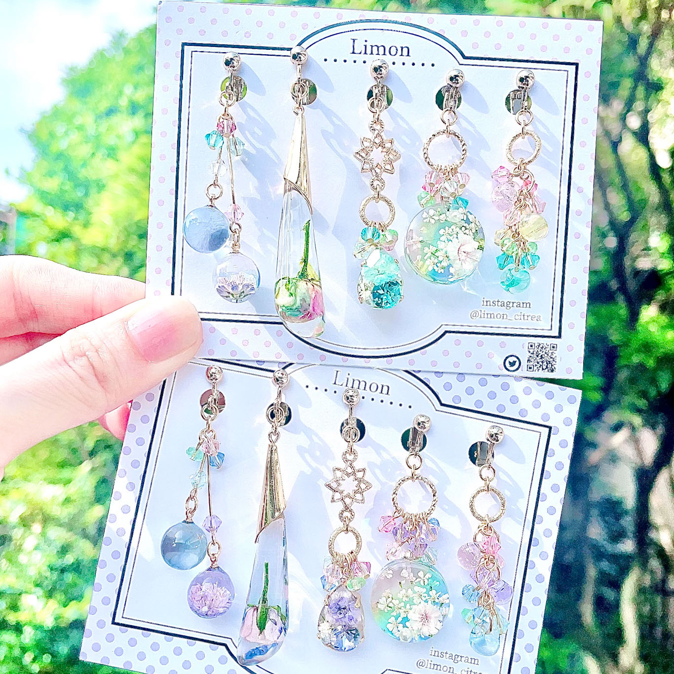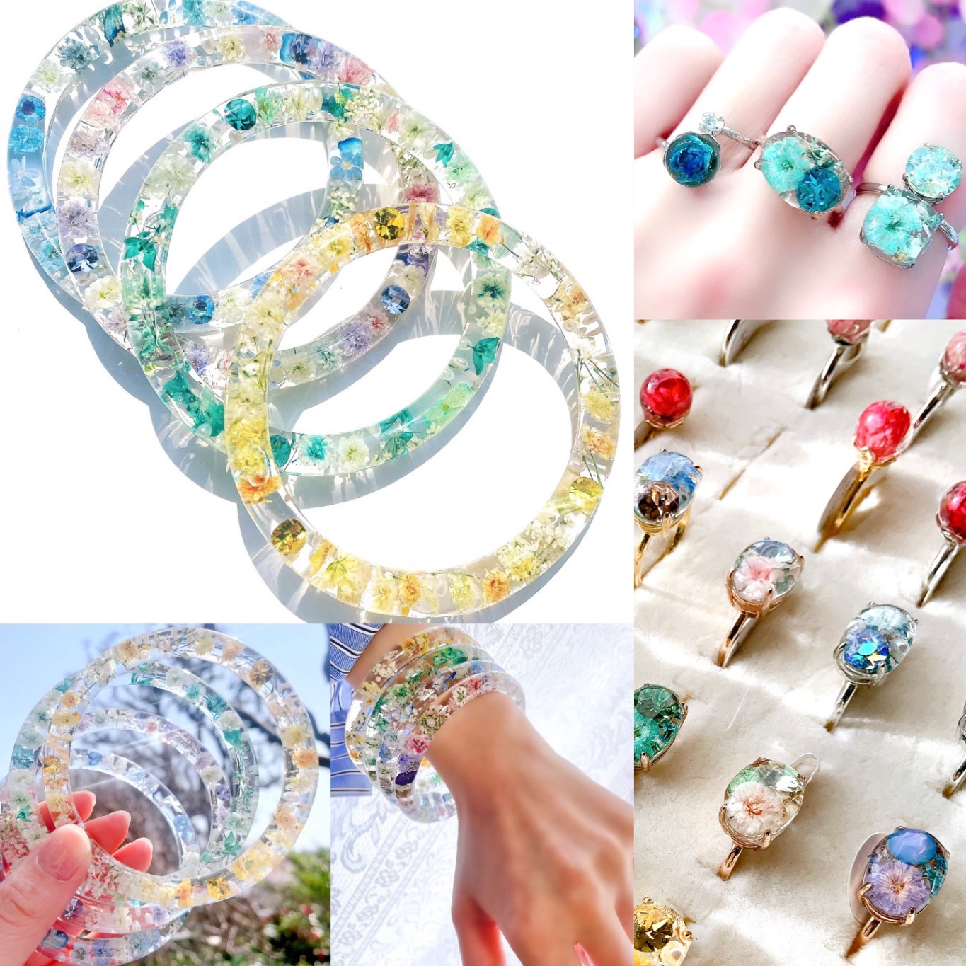 染めた花の樹脂とガラスのアクセサリー販売