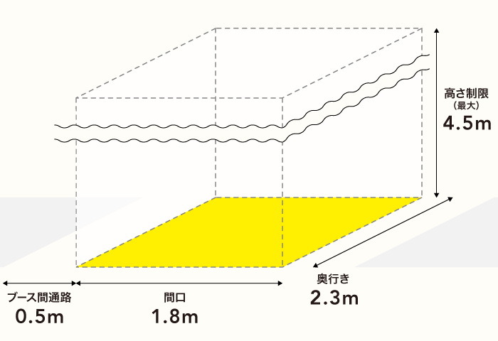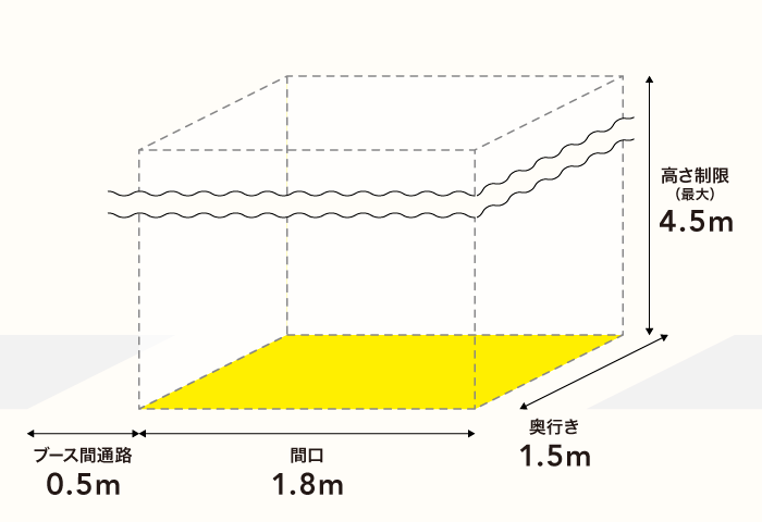 ブースの広さ | 間口:1.8m × 奥行き:2.3m 高さ制限:4.5mまで |